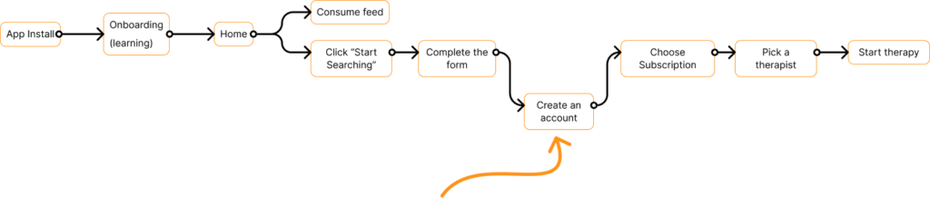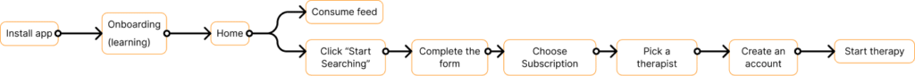 The app was designed in order to fulfill the most important user flow, the one on which a user gets to talk to a therapist in a very simple manner. I call it the “happy task flow”.